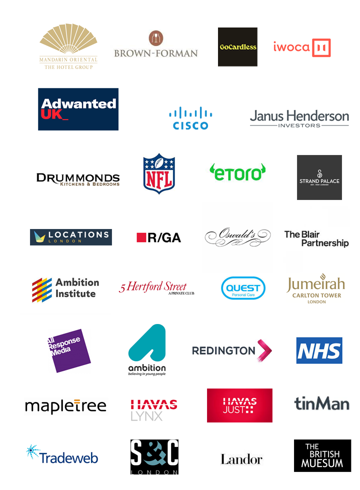 We work for both business and individuals. The line-up includes media companies, the NHS, fashion brands, IT companies, hotel chains, software developers, travel companies, retail groups, music companies and design and advertising agencies.